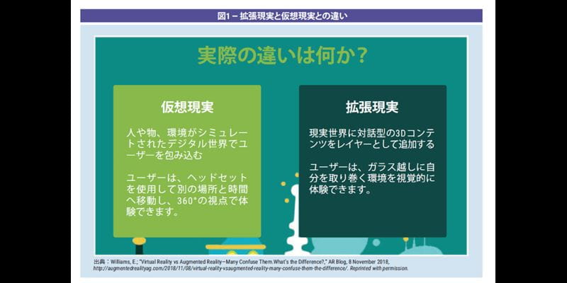現在、QBE Insuranceで北米事業部(NAO: North American Operations)のグローバルアイデンティティ&アクセス管理チームのリーダーを務めています。過去には、ウィスコンシン州マディソン(米国)を拠点とする金融サービス企業で上級IT監査人を3年以上務め、医療および建設産業でIT運用インシデントマネージャーを6年以上務めた実績があります。特集記事図1 — 拡張現実と仮想現実との違い出