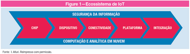O plano de jogo para a segurança de IoT oferece uma visão geral do ecossistema de IoT e aborda padrões, estruturas e propostas regulatórias que foram desenvolvidas recentemente. Figura 1 representa um ecossistema de IoT no qual a segurança da informação é uma parte integrante.