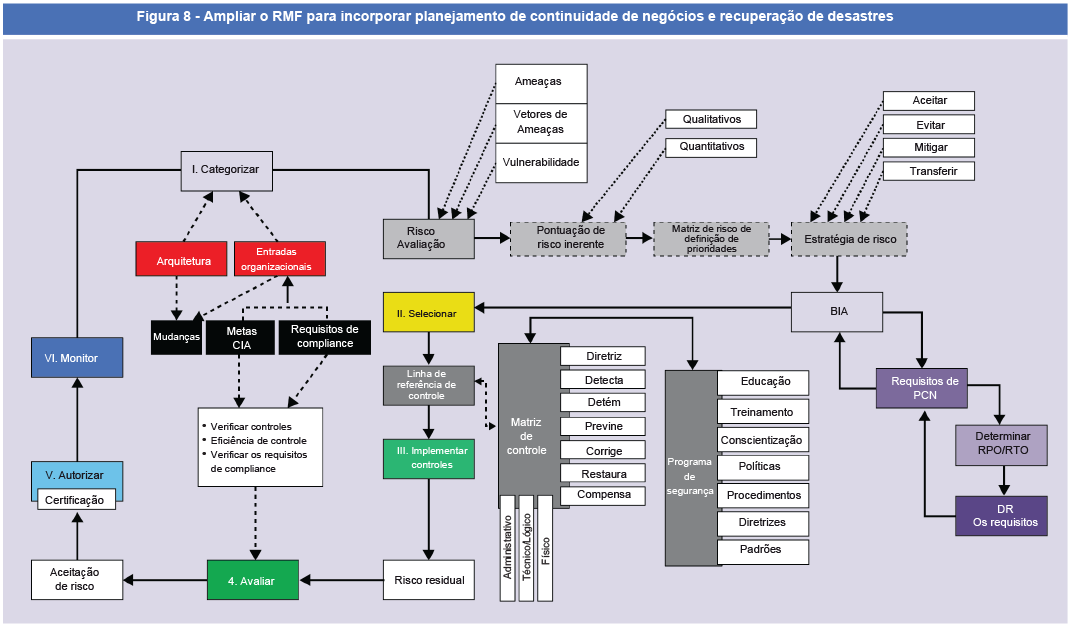 É por isso que pode ser útil ampliar a abordagem baseada em riscos da NIST SP 800-37. É um framework abrangente que permite o monitoramento contínuo e o ajuste dos controles. É um processo interminável de definir o estado atual de uma organização e o estado desejado para detectar e preencher lacunas potenciais, já que nem tudo pode ser implementado de uma vez, resultando em múltiplos ciclos de planejamento e orçamento para preencher lacunas.