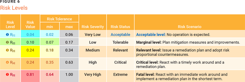 Note for database use: In the calculation, the risk value is numerical while its level is qualitative. The transition from value to level is through risk tolerance. For example, in figure 6, a risk value of 0.13 is a risk level of 2, since it is in the 0.07 to 0.17 range.