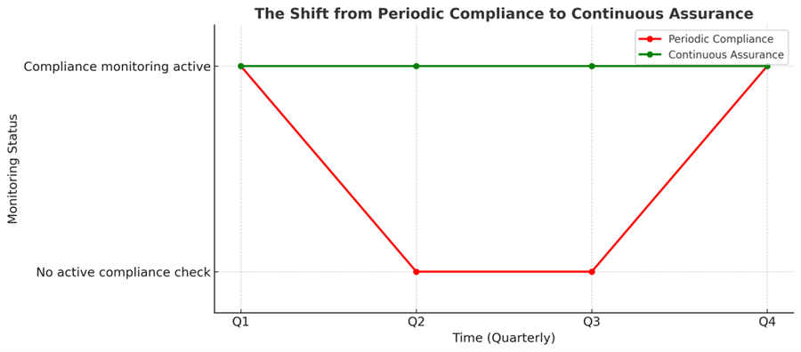 Figure 1: The Shift from Periodic Compliance to Continuous Assurance – Timeline Chart